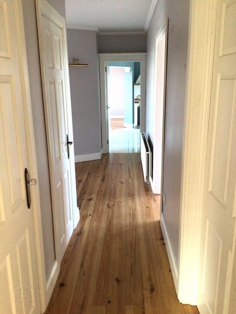 PVC Front Door with Side Glazing. Clock Cupboard & Hotpress. Solid Wooden Flooring. Double Panel Radiator