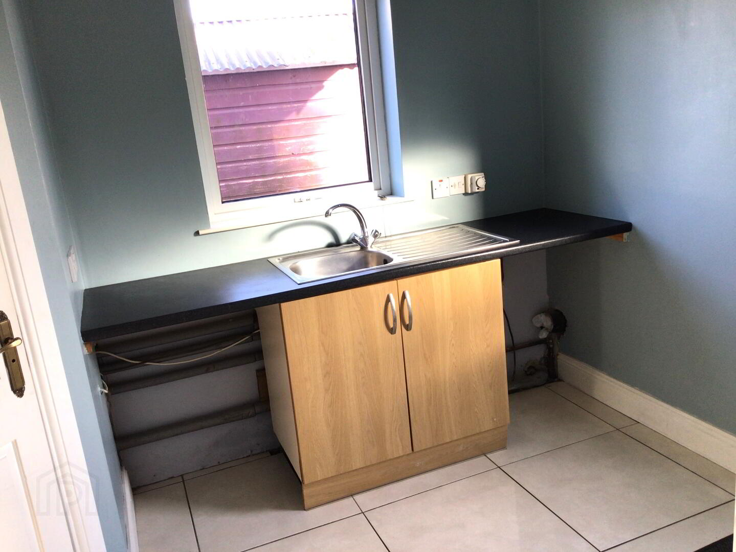 Low Level Units. Single Drainer Sink Unit with Mixer Taps. Plumbed for Washing Machine. Fully Tiled Floor. Part tiling to Walls. Pvc Back Door. Storage Area. Single Panel Radiator