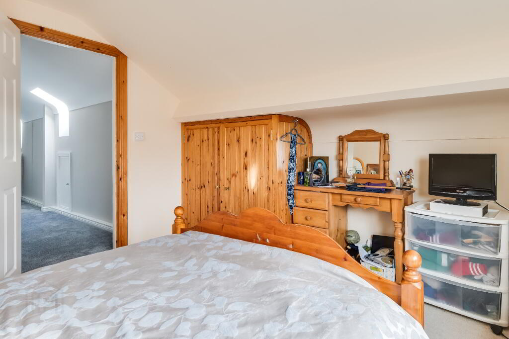 PVC exterior door with glazed inset & side screens, laminate flooring, moulded wood panelling, ceiling cornice, wall mounted tall radiator.