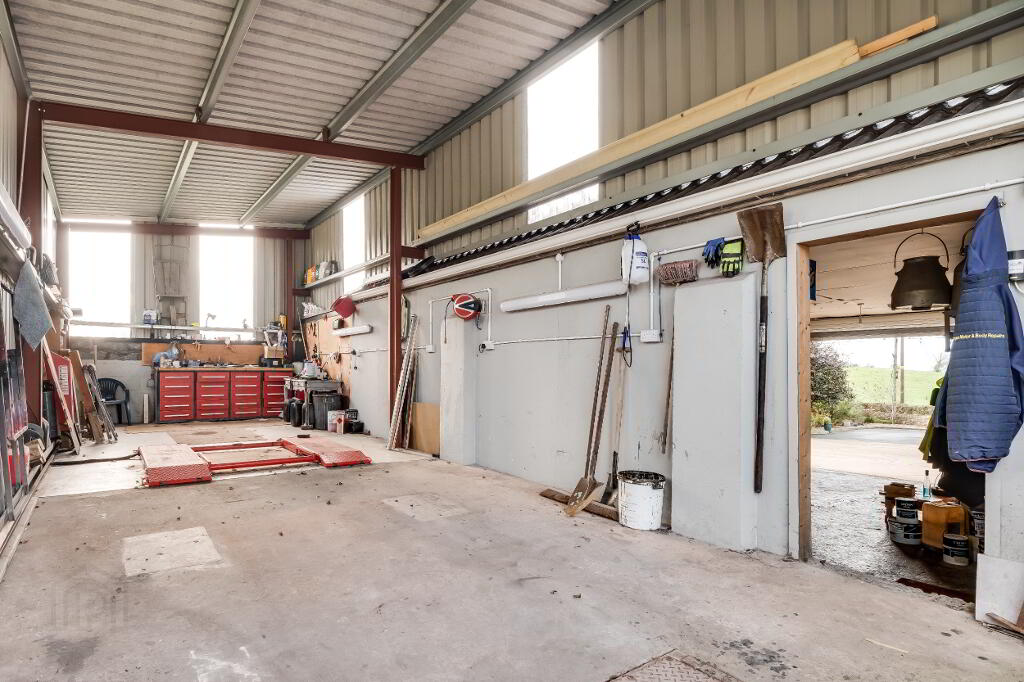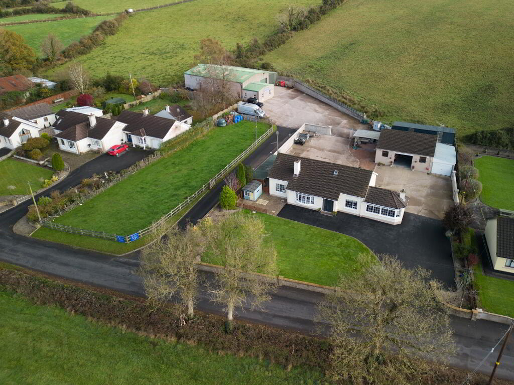 The property is set within beautifully matured grounds that perfectly complement its charming country setting. To the front, an attractively landscaped garden creates a welcoming approach, framed by well-tended lawns and established planting that provide colour and character throughout the seasons. To the rear, an extensive parking area offers excellent space for vehicles, further enhanced by a substantial garage providing additional storage and practical convenience. A feature raised and covered patio area completes the outdoor, offering an ideal space for entertaining, dining, or simply relaxing while enjoying the tranquil surroundings.